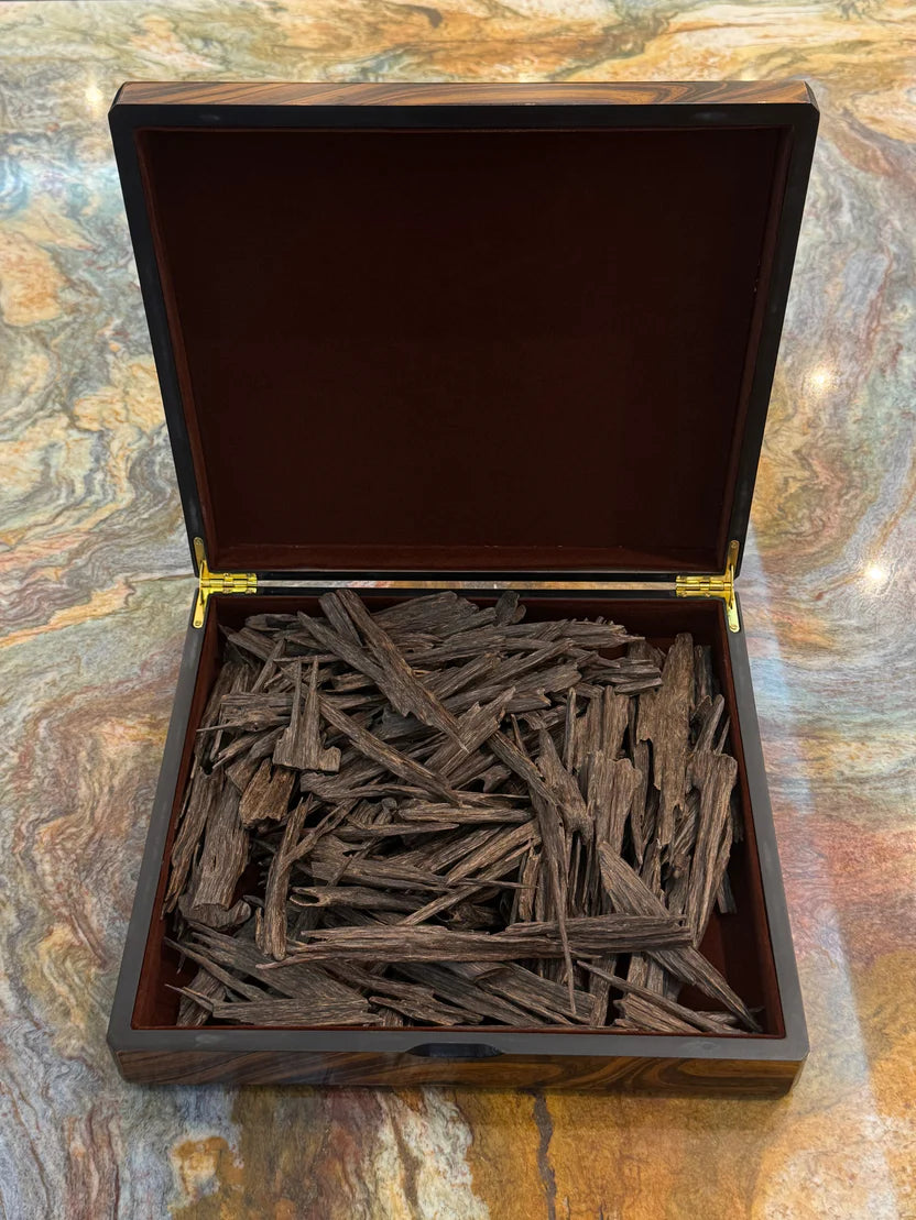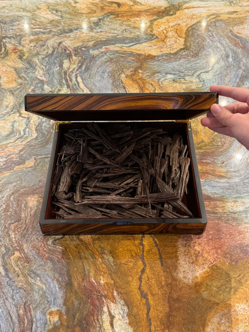 Pure oud wood from agarwood trees. Box only included for orders over 50 grams